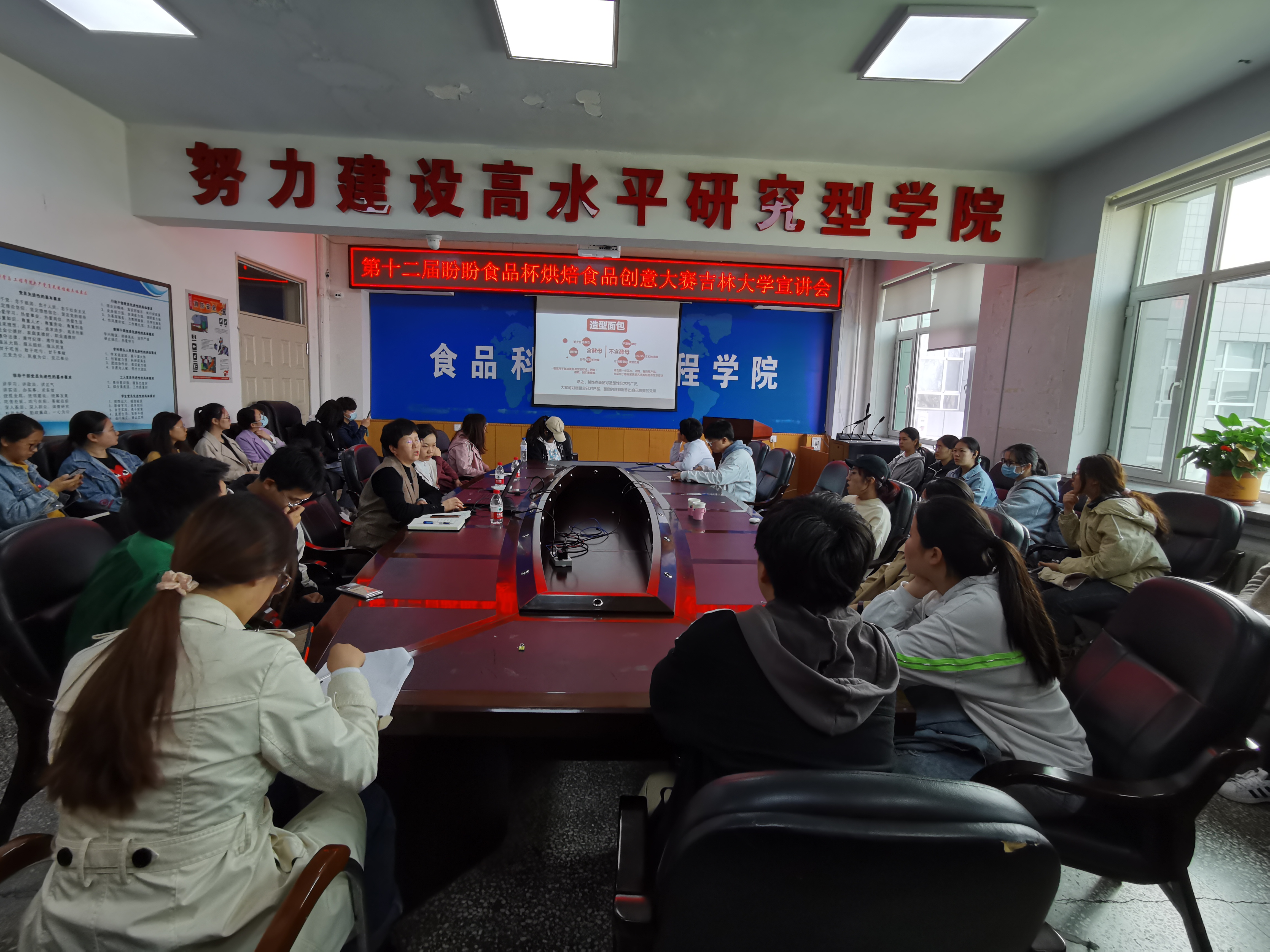 In order to carry forward the characteristics of the college, advocate a healthy and beautiful life, at the same time, to stimulate the innovation vitality of food major students, and demonstrate professional skills, the Chinese Association of Food Science and Technology and Fujian Panpan Food Co., Ltd. jointly hold the 12th Panpan Food Cup Baked Food Creativity Competition, the Jilin University presentation meeting of this competition was successfully held at 12:20 noon on April 28, in the meeting room on the third floor of the Food Building of Heping Campus. Deputy Dean of the School of Food Science and Engineering, professor Sun Chunyan, Associate Professor Zhao Changhui, Teacher Ma Shuang, and other teacher representatives, as well as some undergraduates and graduate students, attended the presentation.