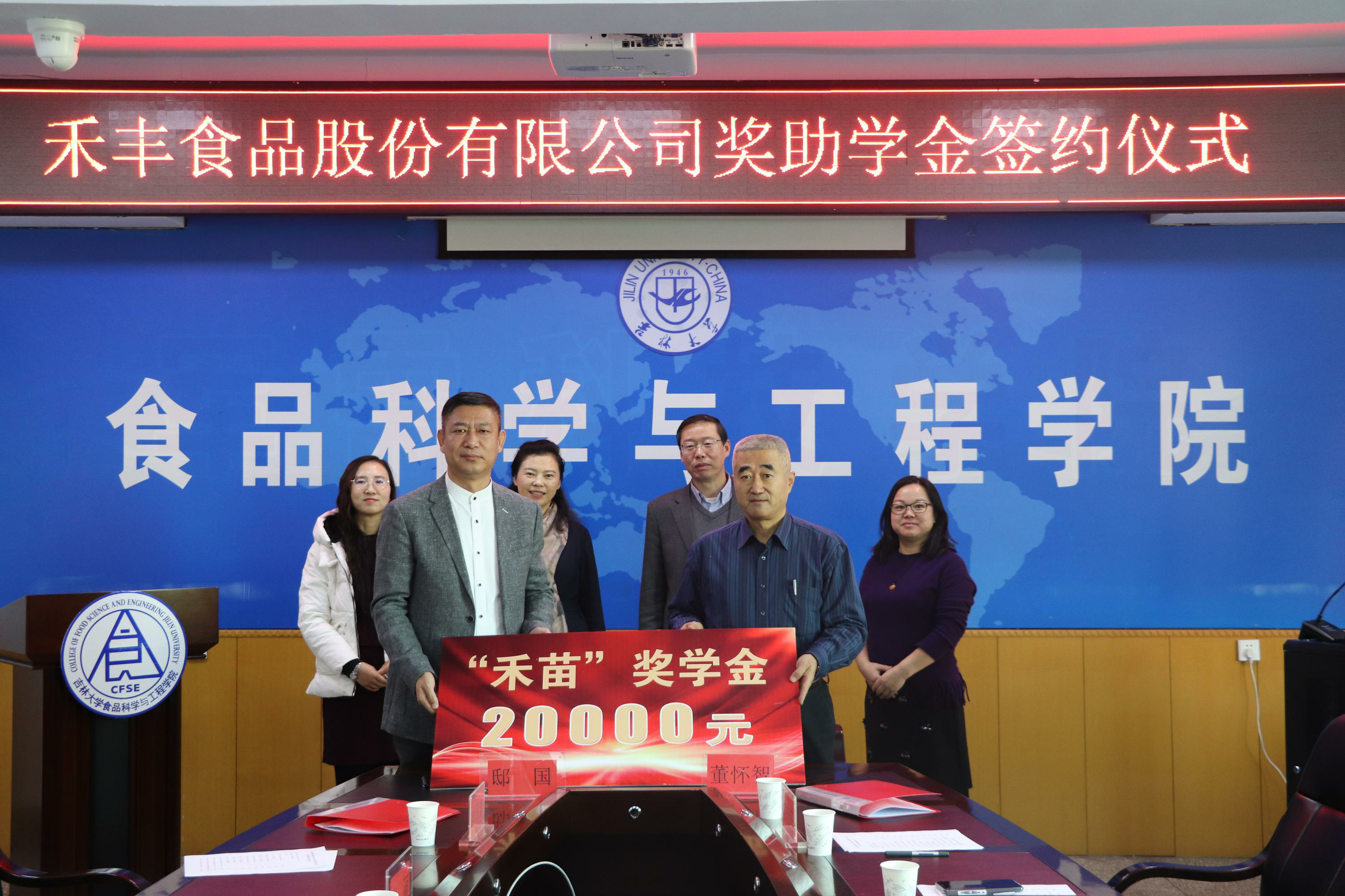 Finally, teacher Dong Huaizhi, and Di Guo, Vice President of Hefeng Food Co., Ltd., signed the "Hefeng" scholarship agreement on behalf of the school and the enterprise. Hefeng Food Co., Ltd. set up a 100,000-yuan scholarship in the College of Food Science and Engineering of Jilin University to support the college's joint school running, collaborative education, and technological innovation, so as to promote the joint development of schools and enterprises and win-win cooperation.