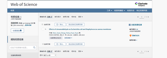 为第一作者单位,在食品领域TOP 期刊“FOOD CONTROL”期刊发表论文《Effects of cinnamaldehyde on Escherichia coli and Staphylococcus aureus membrane》,到 十一月/十二月 2019 为止,受到引用的次数已将其归入其学术领域中最优秀的 1% 之列,入选“ESI高被引”。(全文链接:)