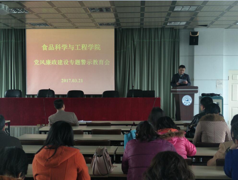 党风廉政建设专题警示教育会议上做的《即知即改、立行立改,确保全面从严治党要求在我校落地生根》的重要讲话精神。高书记强调,要充分认识开展党风廉政教育的重大意义,用“身边人”“人边事”时刻警示自己,牢记法纪意识,做遵章守纪的好干部、好党员、好教工。要求学院全体教职工牢固树立“四个意识”,尤其是政治意识和看齐意识,进一步严明政治纪律,加强廉洁自律,扬正气、树新风,以永远在路上的恒心和韧劲推动全面从严治党的层层深入,形成党风更好、作风更正、政风更清的学院政治生态,推进学院各项事业健康、有序、稳步发展。