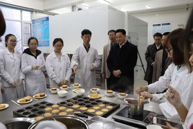 随后,校长一行考察了食品学院的部分实验室和科研平台,就学院实验室的硬件建设,工作环境,科研平台承担项目情况等听取了学院领导汇报并进行了交流。考察过程中,李元元校长还饶有兴致地观看了学院建设图片展,十九大宣传栏等学院文化设施,指出学院的宣传工作有传统,党建工作接地气,有创新。