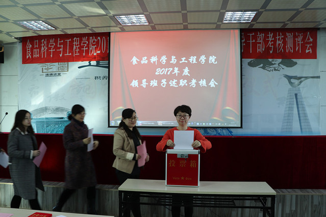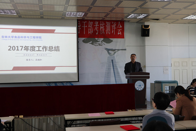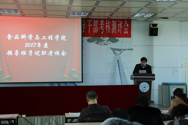 2018年3月16日下午,食品科学与工程学院在管理楼三楼报告厅召开了2017年度工作总结表彰大会暨处级领导班子和领导干部年度述职测评会。学院全体教职工和部分学生代表参加了此次会议。会议由院长张铁华同志主持。