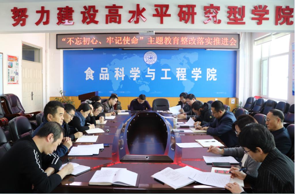 在食品楼三楼会议室召开了“不忘初心、牢记使命”主题教育整改落实推进会,学院领导班子成员、党委委员、纪委委员、党支部书记、各办、中心主任及副主任参加了会议,学校主题教育第五指导组组长刘雪峰同志莅临指导。会议有党委书记高福和同志主持。