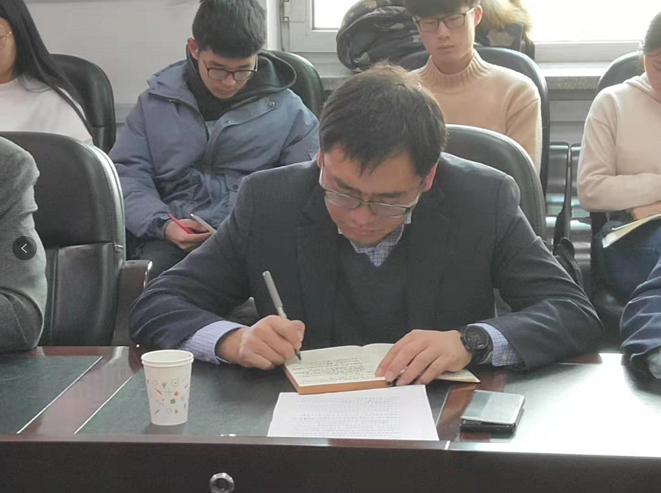 随后,党委书记高福和同志就学院主题教育开展情况做工作总结。高书记指出,学院党委严格落实“守初心 担使命 找差距 抓落实”的“十二字”总要求,聚焦主题教育,坚持问题导向,强化整改落实,把学习教育、调查研究、检视问题和整改落实贯穿主题教育全过程,做到学做结合,查改贯通。并从四个方面重点总结主题教育工作情况:一是强化组织领导,突出顶层设计,有效推进“不忘初心、牢记使命”主题教育;二是强化党的建设,聚焦教育主线,扎实学习教育,深入调查研究,正确检视问题,切实推动整改;三是开展特色工作,丰富教育活动,切实增强主题教育的针对性和实效性;四是增强政治责任,巩固教育成果,把主题教育作为党员干部的终身课题,把学习教育、调查研究、检视问题、整改落实贯穿于学院发展建设,时刻在思想、政治、作风、能力、廉政方面紧跟事业前进步伐。高书记强调,学院将重点做好三方面工作:一是注重科学谋划,提高政治站位,以高度的政治自觉、严肃的政治态度持续开展初心使命教育;二是构建长效机制,加强制度执行,推动主题教育善始善终、善作善成;三是推进整改落实,巩固教育成果巩固扩大主题教育成果,确保主题教育取得扎实成效。