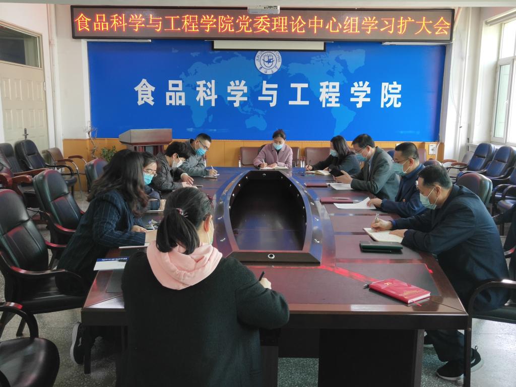 在食品楼三楼会议室召开党委理论中心组学习(扩大)会议。学院党委委员、纪委委员、各党支部书记参加了会议。会议由学院党委书记高福和同志主持。