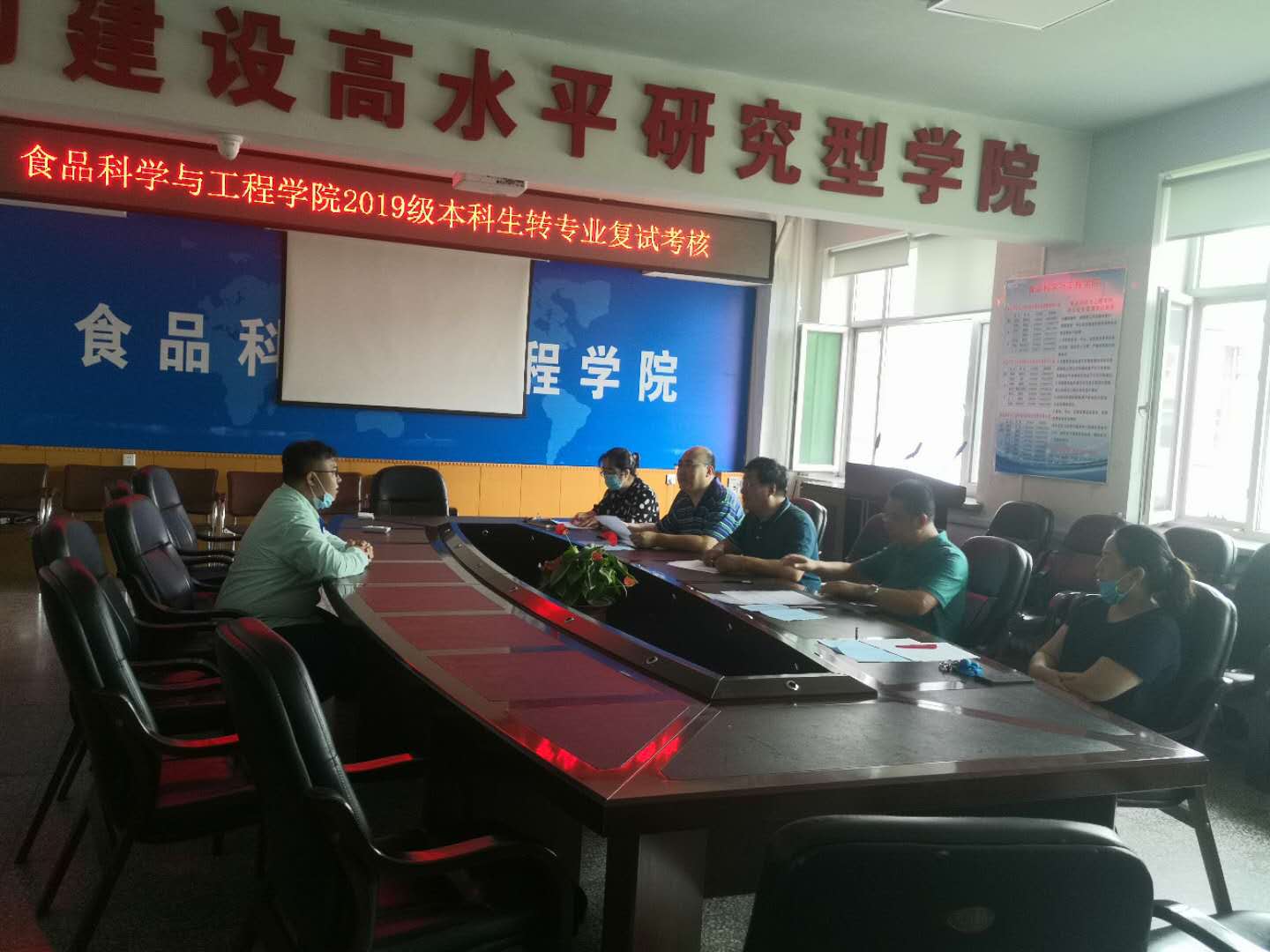 《关于公布2019级本科生考核转专业(类)学院考核名单及相关工作的通知》要求,我院于2020年8月26日下午14:00在食品楼三楼会议室举行了2019级本科生转专业复试考核。专家组成员由党委书记高福和、教学院长周亚军、教学委员会主任潘风光、食品科学与工程系主任于亚莉、食品质量与安全系主任袁媛组成。