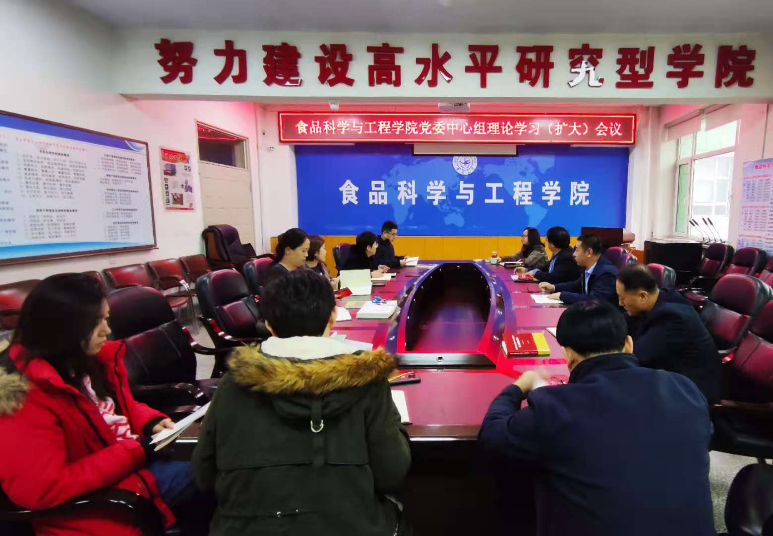 在食品楼三楼会议室召开党委理论中心组学习(扩大)会议。学院党委委员、纪委委员、党支部书记参加了会议。会议由学院党委书记高福和同志主持。