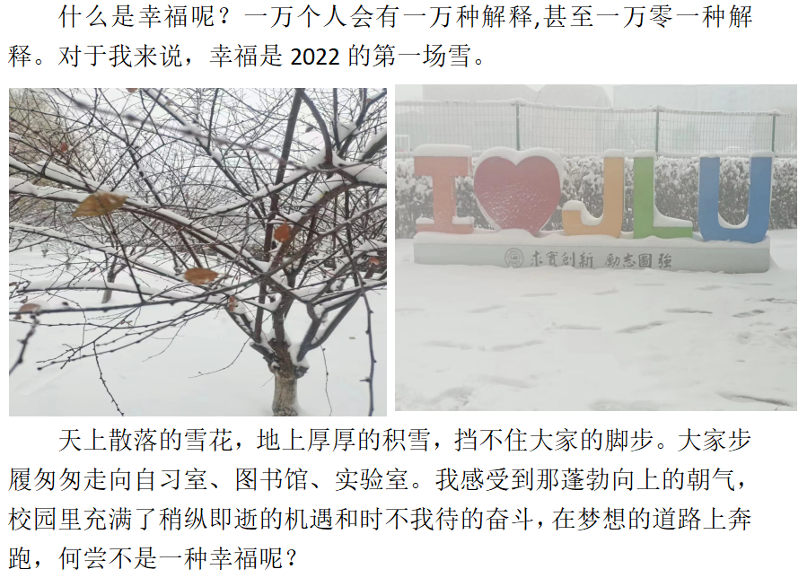 我院举办此次“记令我幸福的一件小事”线上征文活动,旨在唤醒同学们内心向善、求美的本真愿望,引导大家去发现、体验身边普通人和寻常事,去感悟这些普通平凡的人和事中蕴涵的真善美,提升幸福感,助力学习与科研。