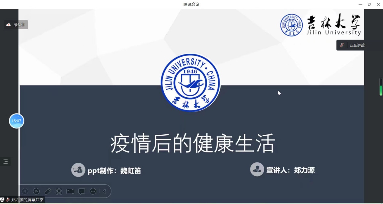 于线上组织了“后疫情时代的健康生活”科普活动。本次活动主讲人为22级硕士生郑力源。食品学院百余名本科生、硕士生、博士生参与了此次活动。