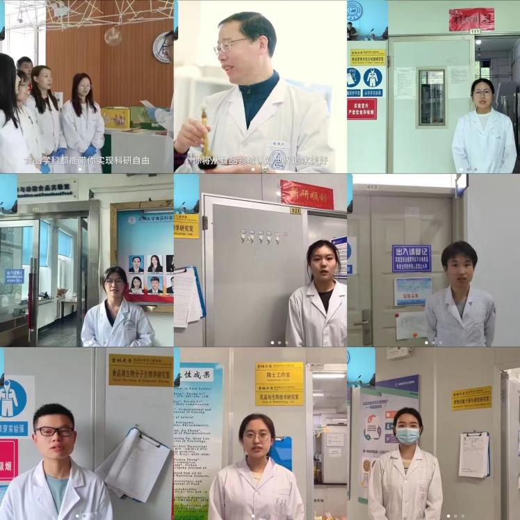 包罗万象的学科群、与食品密切相关的太空选育菌种、食源性功能肽生物制备等前沿科学技术、老师的无私分享、尊重学生个性、锻炼学生品判思维的治学态度、铸成中国脊梁的杰出校友:“两弹元勋”朱光亚、“当代保尔”张海迪、“时代楷模”黄大年事迹等;营员们近距离听到了院长和研究生学长学姐们特意为他们制作的视频对话,张铁华说:“在食品学科,研究生可以实现科研的自由,开启食品与梦想的邂逅”,随后学长学姐依次带领他们参观了营养与功能食品吉林省重点实验室、乳品与生物技术研究室、食品营养与安全检测研究室、农产品加工与贮藏工程实验室等。