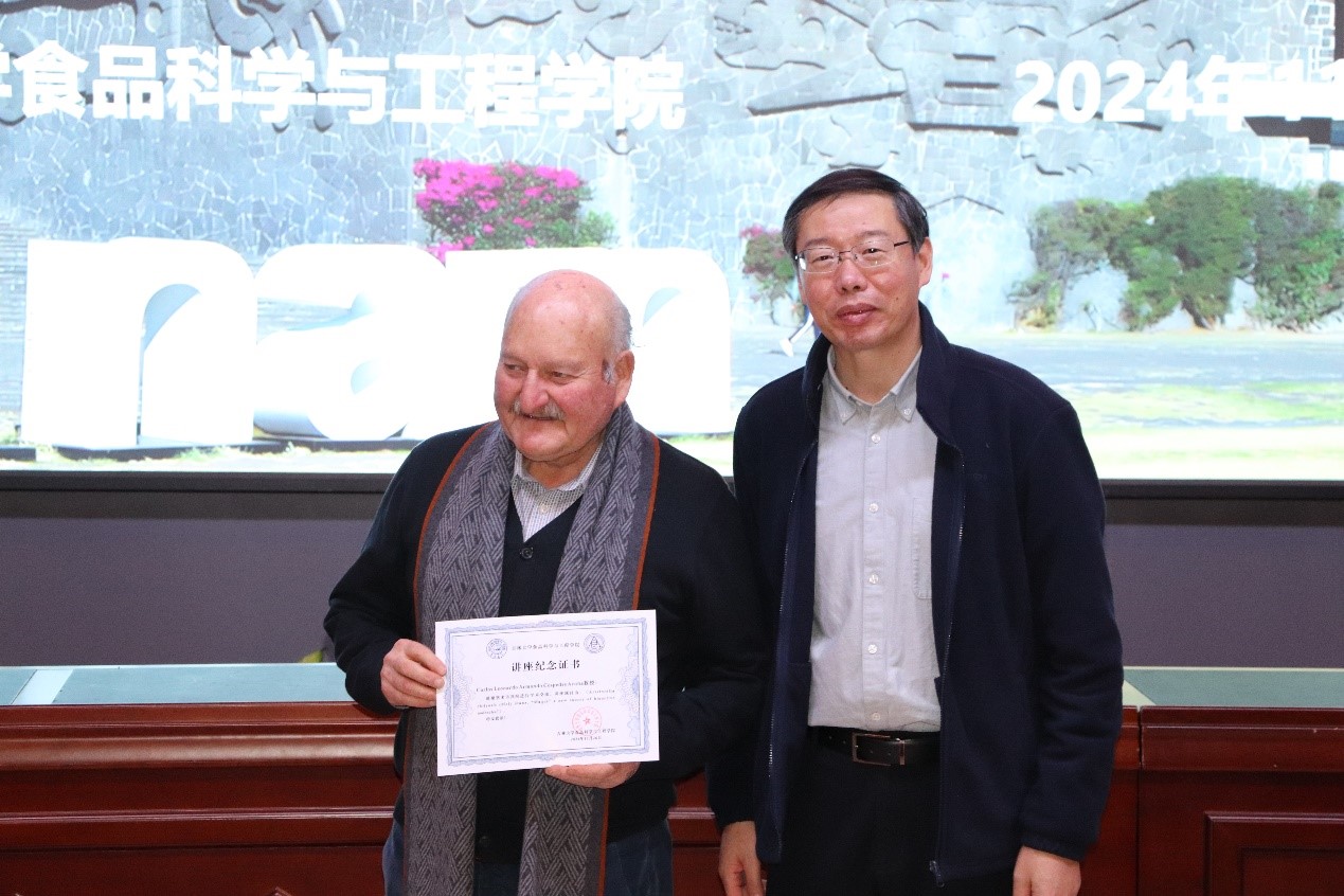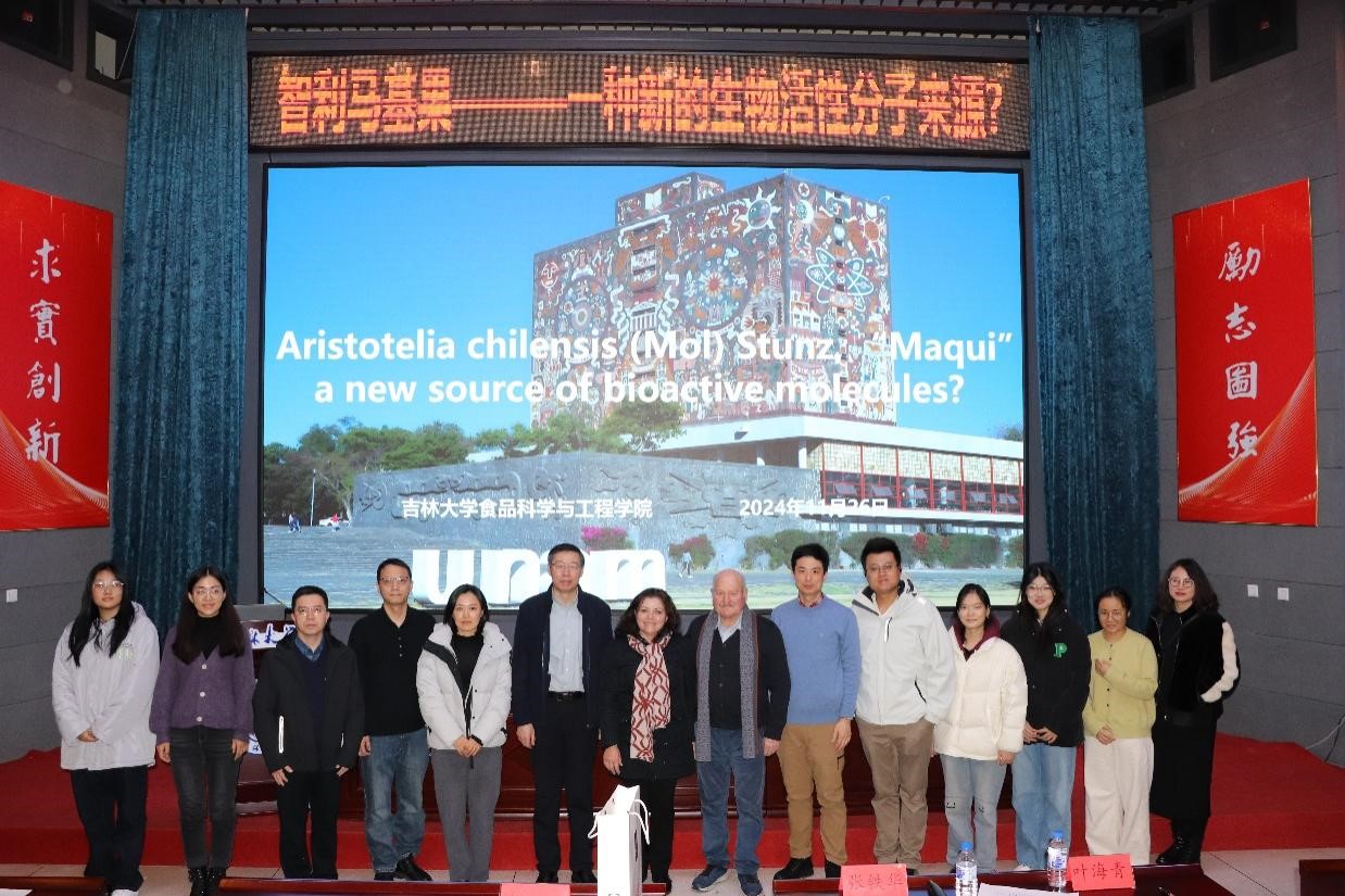 Carlos 教授详细讲解了一种生物活性分子来源——马基果,这是一种主要生长于智利中部和南部的小型灌木植物,其果实因富含花青素和多酚类化合物而闻名。他引用多项相关文献,详细介绍了马基果的生物活性化合物,并阐述了这些化合物在抗氧化、抗炎、抗癌和抗糖尿病等方面的潜在作用,并且分享了他在马基果多酚类化合物分离和鉴定方面的最新研究成果,以深入剖析马基果的生物活性为起点,全面阐述了马基果在开发新型食品原料中的应用潜力。在报告中,Carlos教授着重强调了马基果在抗氧化活性方面研究的重要性,并展望了其在食品、化妆品和医药领域的广泛应用前景,揭示了其未来发展趋势。此外,教授还讨论了马基果在食品工业中的应用,如开发富含抗氧化和抗炎成分的功能性食品和饮料,为食品产业的创新发展提供了新思路。在交流互动环节,现场师生踊跃提问,Carlos教授逐一给予了详细解答。