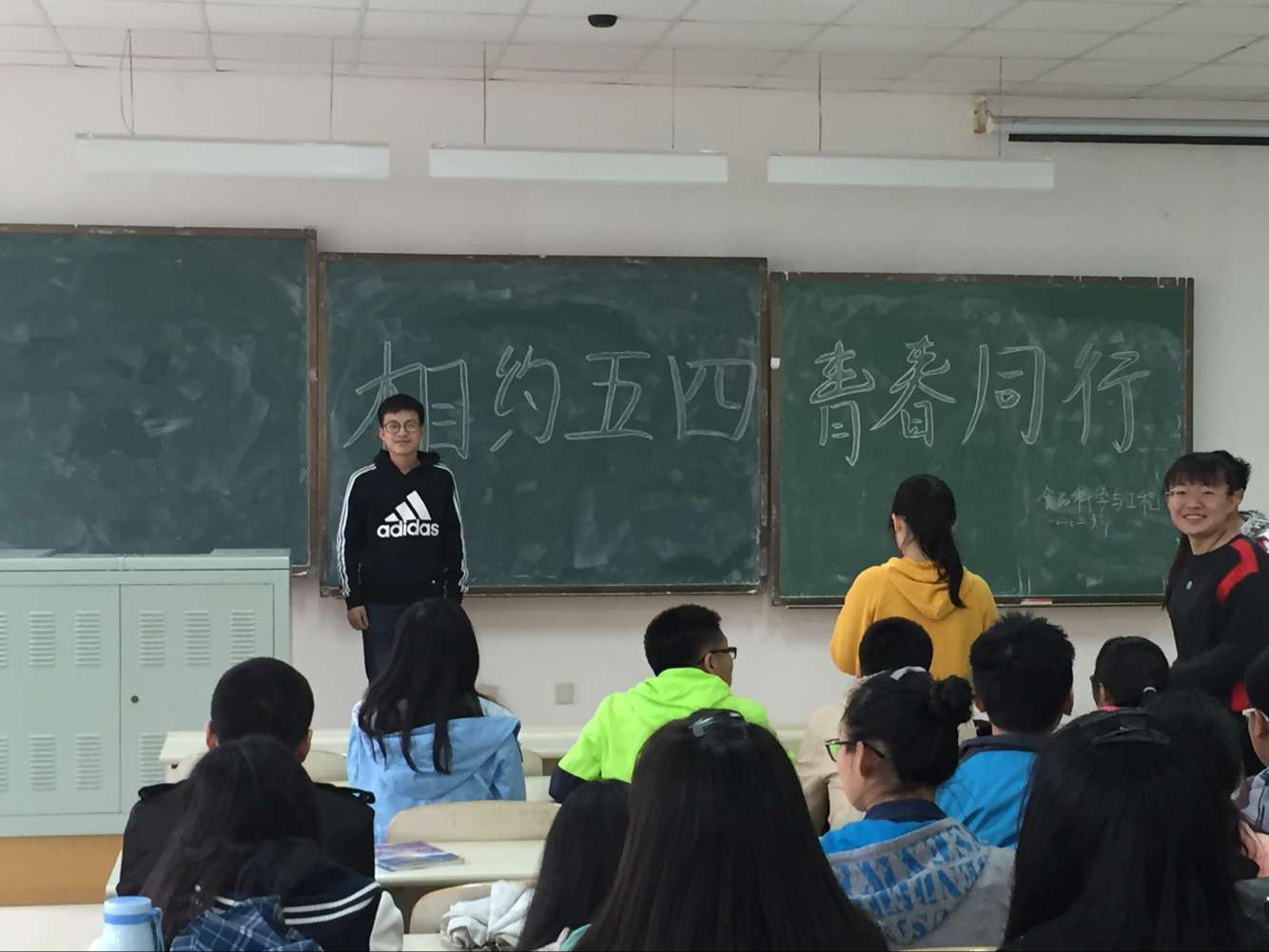 前卫南区李四光楼展开了“相约五四,青春同行”主题班会。 班会上,班长首先借助多媒体向大家介绍五四运动与五四精神,调动起同学们的积极性。随后,在班委的组织下,同学们分小组讨论,并轮流上台演讲,发表对五四精神的认识以及作为青年大学生自身所具有的觉悟。最后,团支书带领全班同学合唱共青团团歌,班会在激昂的歌声中结束。 通过此次班会,同学们深刻理解到作为当代青年,一要关心国家大事,正确分析形势,明确自己的历史责任;二要以“国家兴亡,匹夫有责”作为自己学习、工作的指针,全面提高自己思想道德素质和人文科学素质,努力学会学习、协作、生存、竞争,三要在社会文明和进步中努力发挥高中生青春朝气和示范作用。此次活动激发了同学们的爱国主义热情以及民族责任感,强化同学们的责任意识、爱国意识,相信同学们在以后的学习中,将端正自身的思想态度,将来能为祖国的繁荣昌盛贡献出自己的力量。