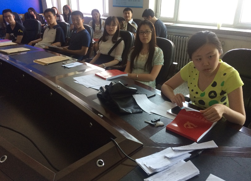 “学党章党规、学系列讲话,做合格党员”学习教育实施方案》,从党员对科学理论的掌握、对自身要求、对工作态度等方面就如何成为一名合格党员发表自己的看法,她要求学生党员们在工作中要脚踏实地;在学习中要精益求精。同时,她还提到“两学一做”是前提,是理论武装,重点在于落实党性教育,关键在于严明纪律,目的在于推动发展。此外,郝慧老师总结了本支部党员队伍建设情况以及在各个方面存在的问题,并从学生党员的培养与发展、学生思想政治工作开展等方面给出具体解决措施。会议最后,郝慧老师号召大家积极响应中央的号召,认真落实“两学一做”相关精神,并发放党章模本,要求学生党员们认真临摹,全心体会。 此次专题会议研讨提升了党员队伍思想政治素质,让学生党员们深刻认识到开展“两学一做”学习教育的必要性。党员们纷纷表示自己将会认真学习好党规党章,努力钻研习近平总书记系列讲话精神,用科学理论武装自身,内化于心,外化于行,在立足本职工作的同时,充分发挥好党员的先锋模范作用,确保“两学一做”能够落到实处,为学院发展建贡献自己的力量。 撰稿人:王漫秋 供图人:王漫秋