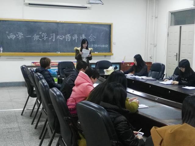 会议,党支部书记王军老师首先对十八届六中全会的会议精神进行了详细的解读,传达了习近平总书记在会上的重要讲话精神。随后,党支部副书记刘轩廷就如何“学好共产党党章,学好系列讲话,做一名合格的共产党员”进行了发言。她结合自身实际,提出“两学一做”基础在“学”,关键在“做”。做学问,要有求真精神,秉承校训“求实创新,励志图强”的态度,严谨治学,实事求是搞学问;做工作,要有务实作风,说老实话,办老实事;做党员,要筑牢拒腐防变的思想道德防线,希望支部每一位党员都有蓬勃朝气,昂扬锐气和浩然正气。