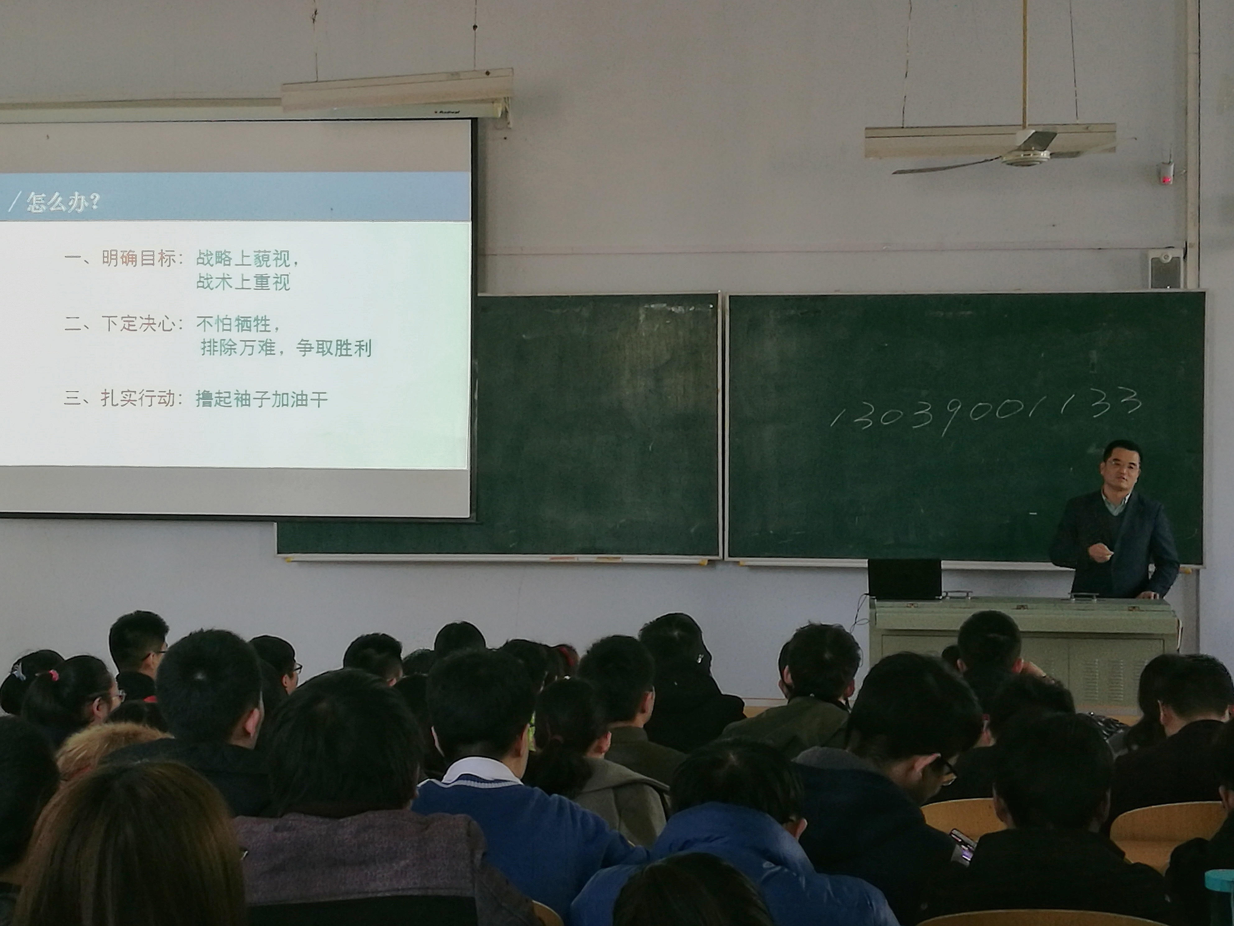 于科讲100教室组织召开了2014级学生年级总结大会。学院党委副书记梅士伟、学工办主任兼团委书记王丹等出席了本次会议。 会议开始后,年级辅导员王丹老师首先运用数据统计工具,对2014级各班上一学期的综合学习情况进行了总结,对比分析了各班学业情况、挂科学生情况、英语过级情况和大家的毕业设想,提出了新学期工作思路;数据真实丰富,对与会同学的触动很大。随后,梅士伟老师作总结讲话,他肯定了同学们三年来努力学习的成果,表达了对同学们辛勤付出的赞赏。接下来,他运用PPT向大家介绍了我院2013级学生的就业、国考和深造情况,带领大家共同分享了学院优秀学子的成绩;向大家展示了食品学院毕业生可能面临的毕业选择,分析了考研、公务员考试、出国深造和就业等不同就业方向的适用性、条件要求和竞争压力,并重点针对本专业国家公务员考试和全国各省区公务员考试岗位需求作了详细说明,帮助大家明确努力方向。梅老师最后希望大家要在大三向大四转换的关键时期坚定信心,明确目标,下定决心,“撸起袖子加油干”,用实干成就青春梦想。 通过本次大会,2014级本科生的学习热情与激情被调动起来。针对2013级本科生就业现状的讲解也让同学们对自己的未来有了更加明确的规划,引发了同学们对未来发展的进一步思考。