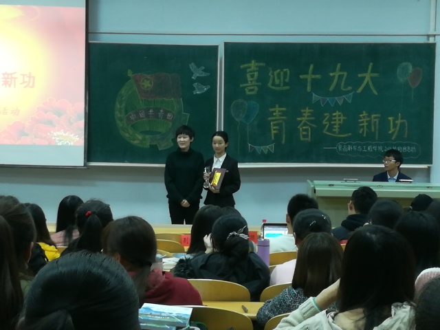 团委于科讲200教室组织开展了“喜庆十九大 青春建新功”系列主题团日活动答辩会。学工办主任王丹、团委负责人郝慧及学生会主席团成员出席了本次活动并担任评委。