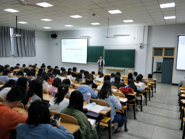 于科学讲堂200举办“点燃青春的梦想”大学生创新创业讲座。本次讲座由山东龙岸集团董事长杨红岩担任主讲嘉宾,学院党委副书记梅士伟、团委负责人郝慧,学院2015级、2016级同学参加了本次讲座。