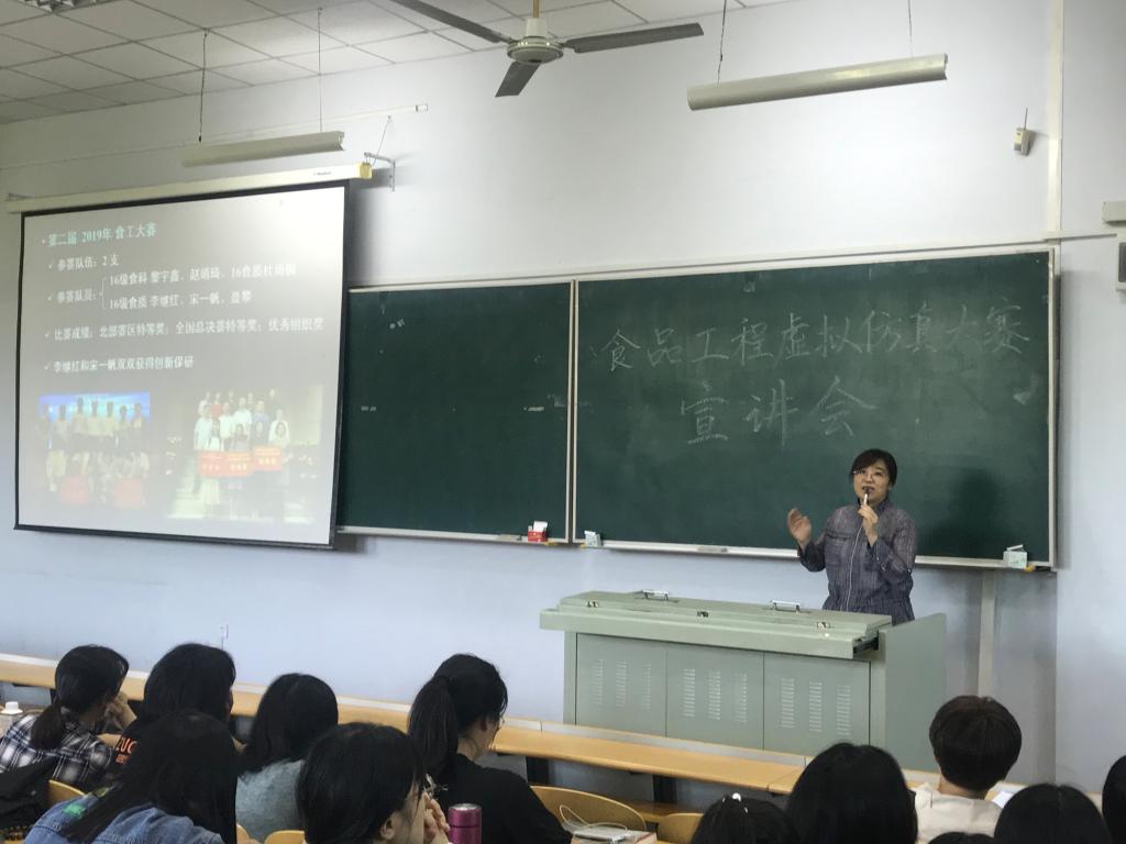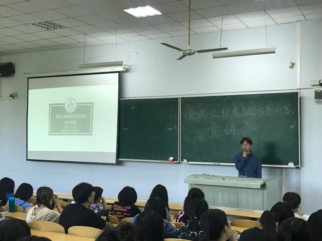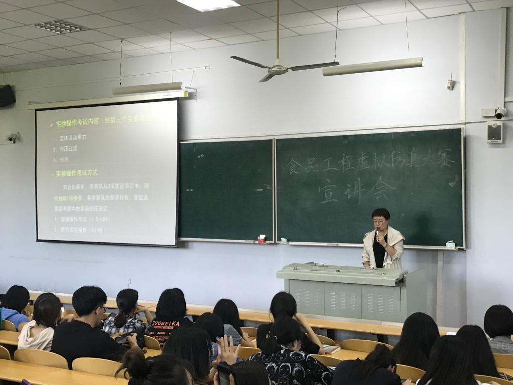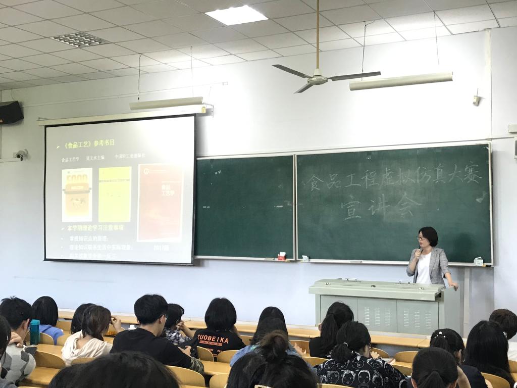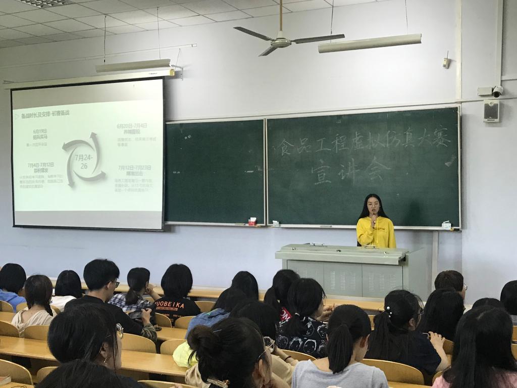 宣讲会开始后,团委书记郝慧老师就虚拟仿真大赛的创办目的,即推动高等学校食品类专业“新工科建设”、提升核心课程的教学质量与行业发展能力,激发大学生学习积极性等方面进行了说明。随后,奚春宇、王笑丹、王翠娜、张燕四位指导教师依次上台,对大赛基本情况、比赛流程、工艺理论考试、虚拟实验及实验操作进行讲解。最后,代表学院参加大赛并获得优异成绩的学生代表李江飞、李继红分别发言,讲述了自己从中所获得的能力与进步,为准备参赛同学的备战提供经验分享。通过老师们的介绍以及两位优秀学长的讲解,参赛选手们更清晰地认识到备战的技巧与关键之处,为提升自己的专业知识与综合能力找到了突破口。