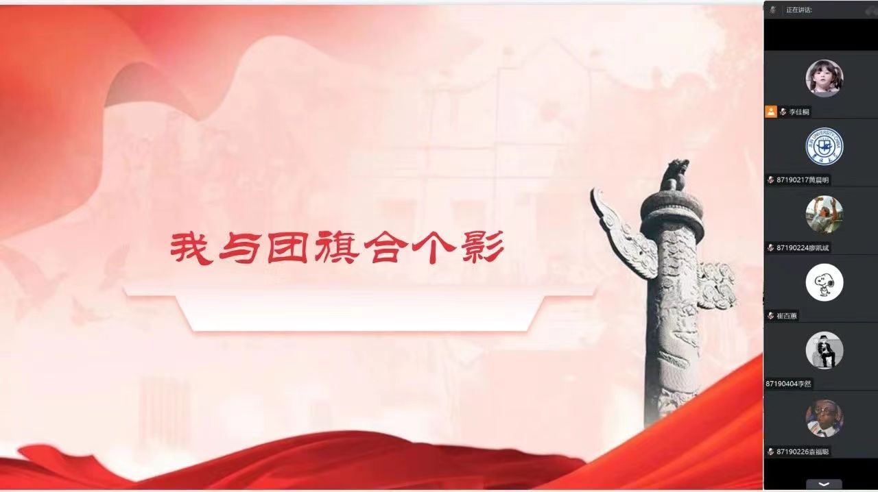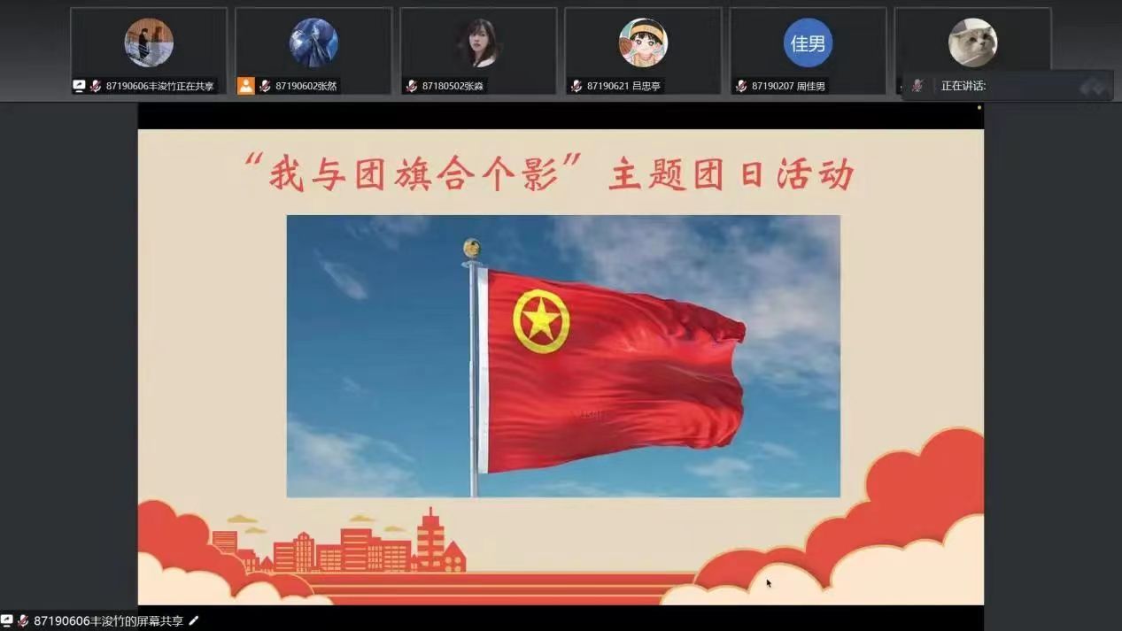 2023年5月12日2019级2班全体成员在腾讯会议进行了线上主题团日活动,主题为“我与团旗合个影”。
