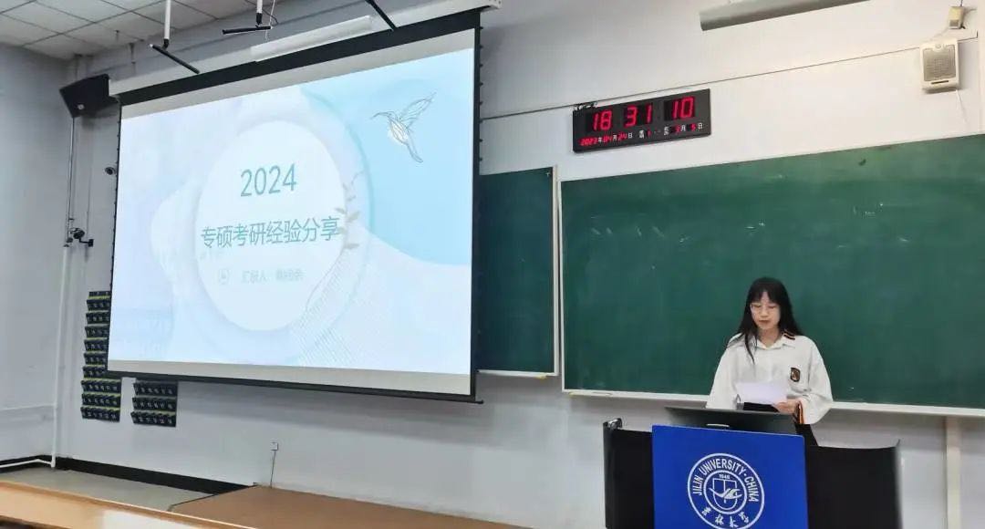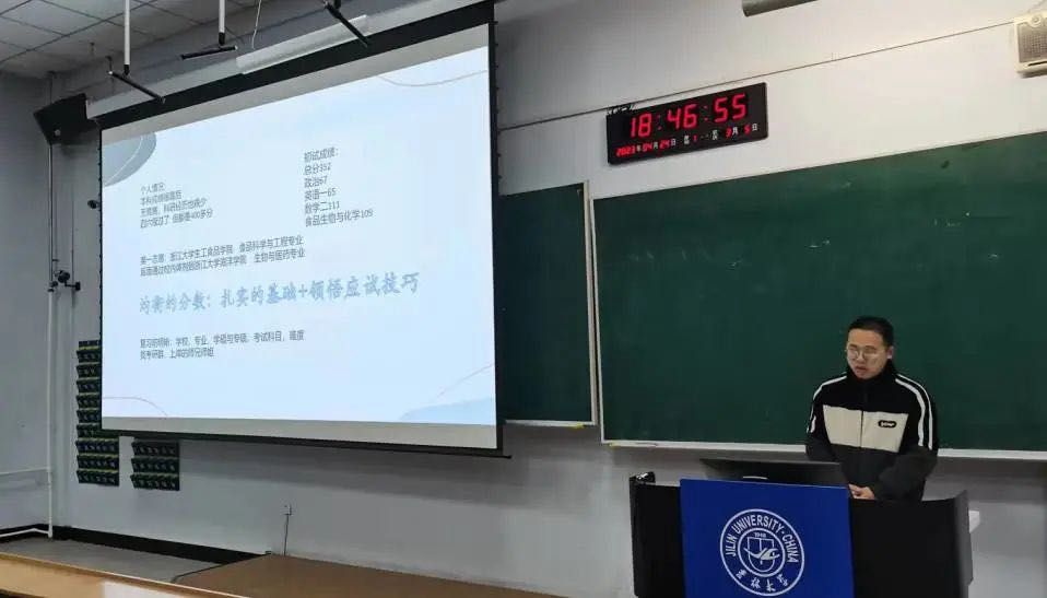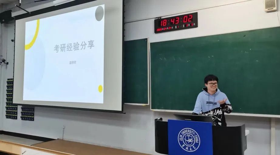 随后,考研至本校本院的鞠函余同学将考研时间分为四个阶段,分别向同学们推荐了课程和书籍,并分享了自己的复试经验,鼓励同学们以积极向上的心态应对笔试和面试。