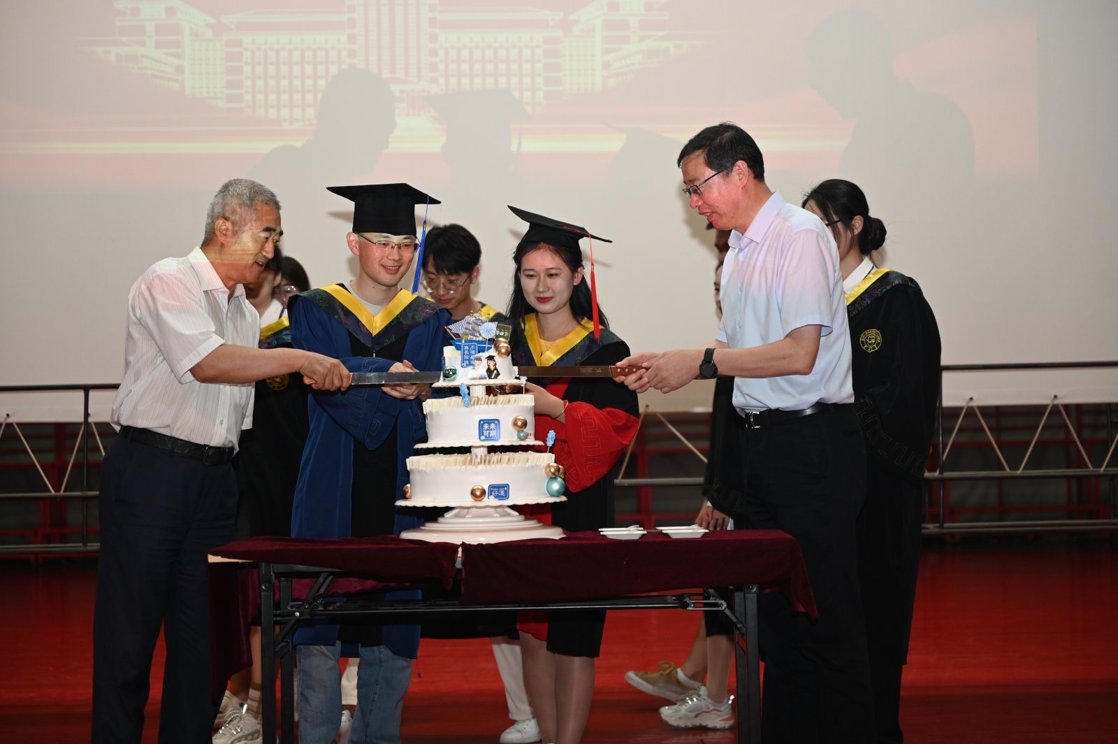 董怀智书记为2023届优秀毕业研究生、优秀本科毕业生颁奖。张铁华院长为优秀毕业生赠与毕业纪念品,并和毕业生代表共同切开嵌有每名毕业生名字的蛋糕,祝福大家未来生活美满甜蜜。