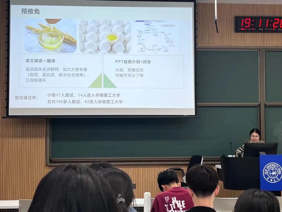 潘培蓓学姐以夏令营预推免的经历,从学硕和专硕二者之间的区别以及不同的侧重方向向同学们介绍了一条新的发展道路。同时她提出参加不同学校开展的夏令营活动能够增加更多成功的机会,并鼓励同学们利用课余时间丰富自己的简历。