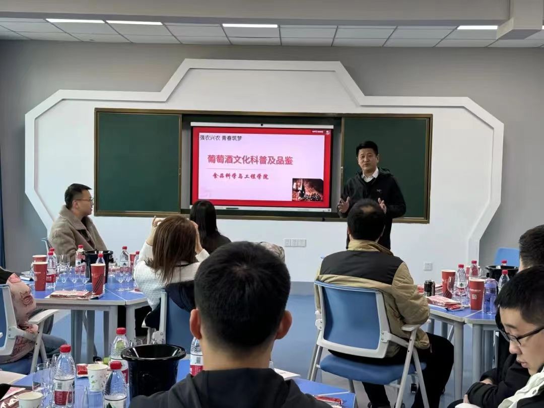 于2024年3月13日举办葡萄酒文化科普及品鉴活动。学院邀请中国贺兰山东麓产区官方认证讲师马秀慧担任主讲人,学院党委副书记李超、学生工作办公室全体辅导员、专业教师代表及学生代表参加活动,活动还邀请到了植物科学学院的相关老师。