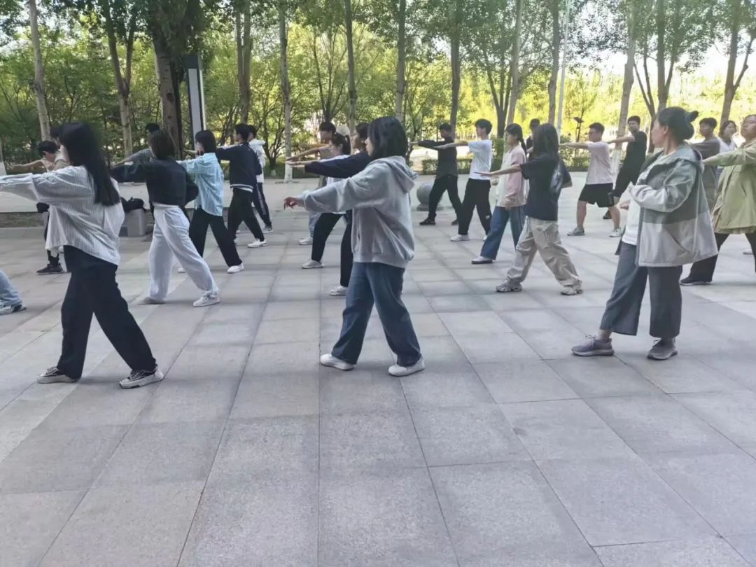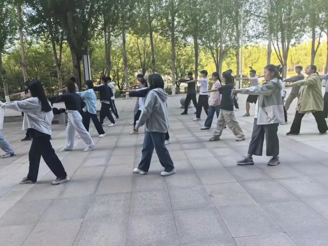 积极奋发,努力拼搏的精神,学院组织进行八极拳队列训练。