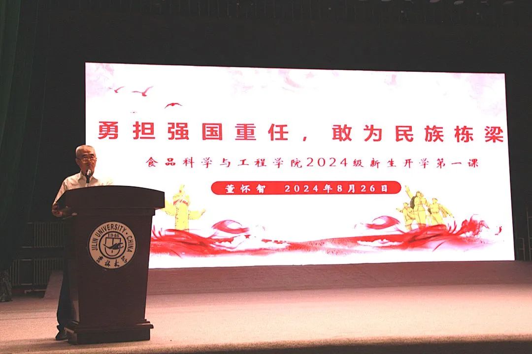 最后,学院党委书记董怀智以“勇担强国重任,敢为民族栋梁”为主题,为新生讲授开学第一