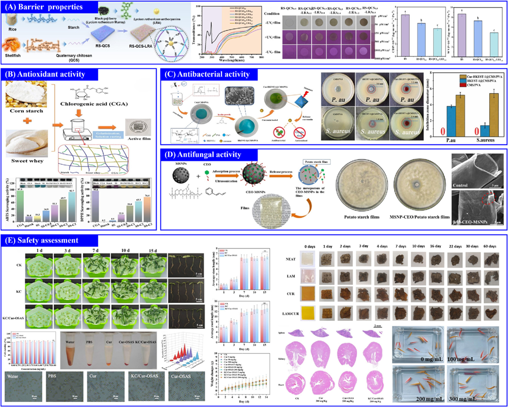 随着全球食品包装市场不断扩大,预计2030年将超5000亿美元,消费者对环保关注日益增强,中国、欧盟等地区已倡导减少塑料使用,凸显了开发以淀粉为代表的可降解生物包装材料的趋势与必要性。为增强消费者接受度,进一步完善淀粉-多酚包装材料的安全性评价也十分重要,应从环境、动植物及细胞等多维度进行综合评估。