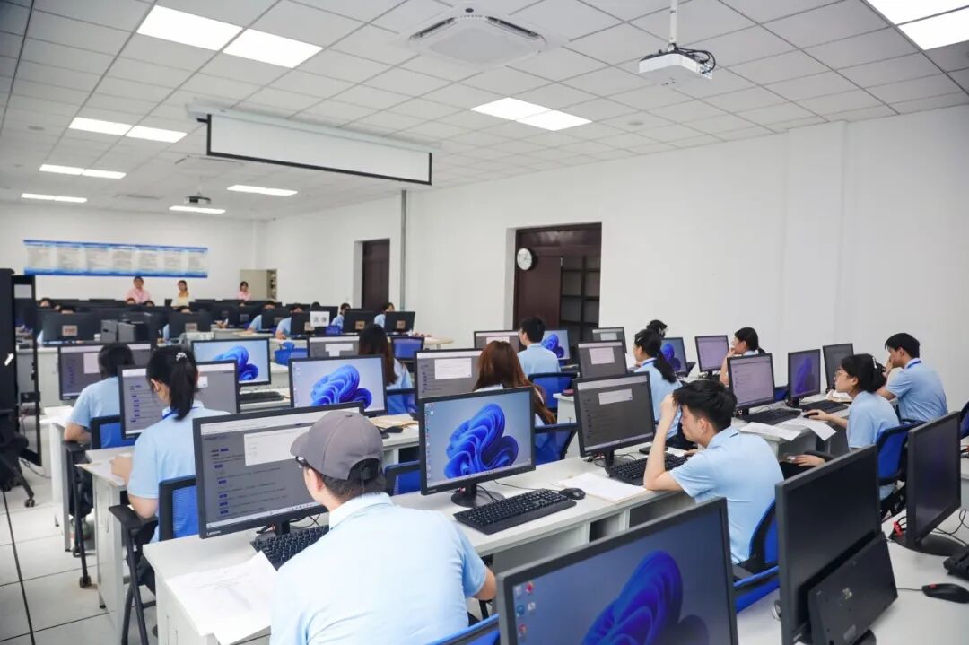 比赛现场气氛紧张而热烈,各个参赛团队的成员们全神贯注地投入到比赛环节中。理论考试环节,笔尖在试卷上沙沙作响,他们凭借扎实的专业知识,认真作答,展现出深厚的理论素养。在虚拟仿真测试区域,同学们紧盯屏幕,眼神中透露出专注与自信,力求在仿真操作中做到精准无误,将平日训练的成果完美呈现