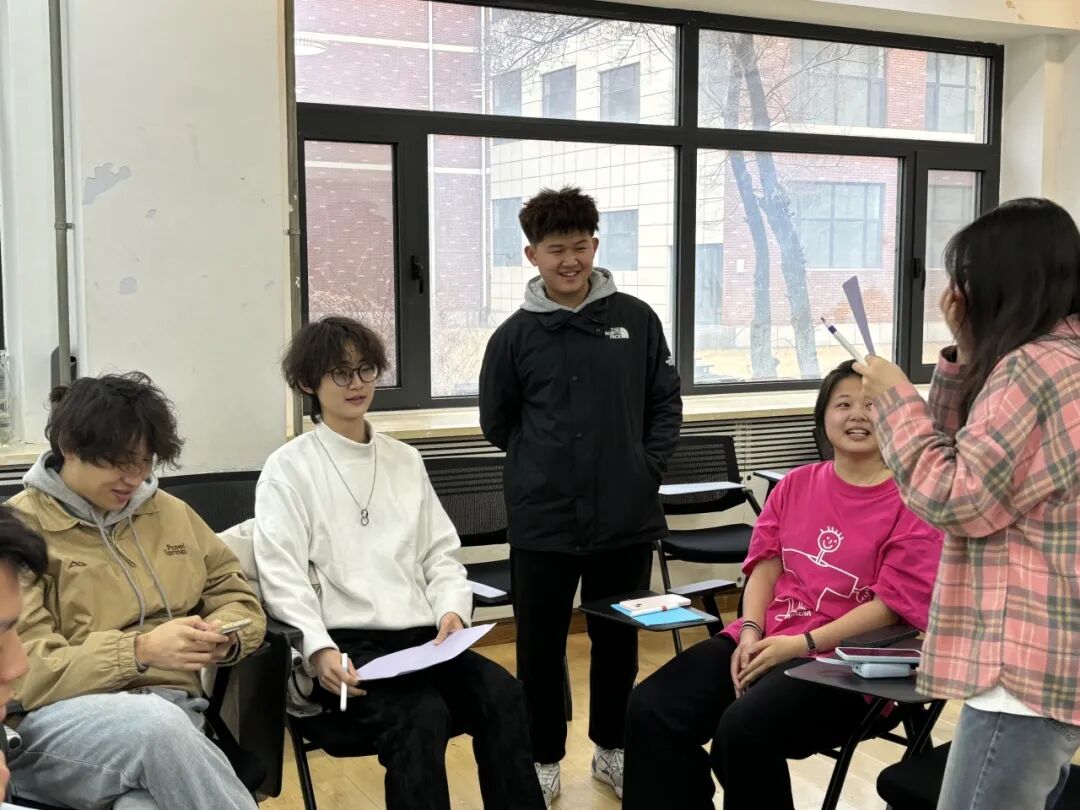 本次“心灵沟通”主题班会在敬信楼A101心理团体活动室进行,分为“暖身阶段”与“班会阶段”。在“暖身阶段”,朋辈心理辅导员为同学们介绍此次班会的主题、目标和预期时间,并组织同学们以小组为单位进行自我介绍。