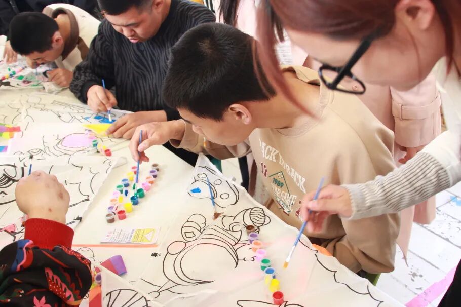 本次活动在“与光同行”特殊儿童训练中心举行,志愿者们陪伴着自闭症儿童们度过了一段美好的时光。活动开始前,志愿者们提前布置好场地,准备好制作风筝所需的材料。