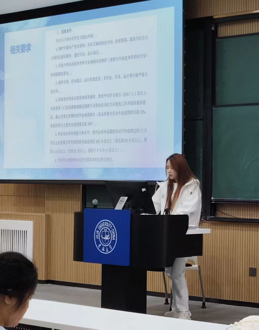 第四位分享的是余慕娟学姐,现已保研至武汉大学前沿交叉学科研究院化学专业,她为同学们介绍了推免相关流程,此外,她还向我们分享了个人经验还有注意事项。她叮嘱同学们提前了解心仪院校的具体要求,并据此准备相关材料。余学姐还以自身经历提醒大家,在申请保研中要合理安排时间,及时调整心态,不因一时挫折而退缩,只要勇敢尝试,总会迎来希望和可能。