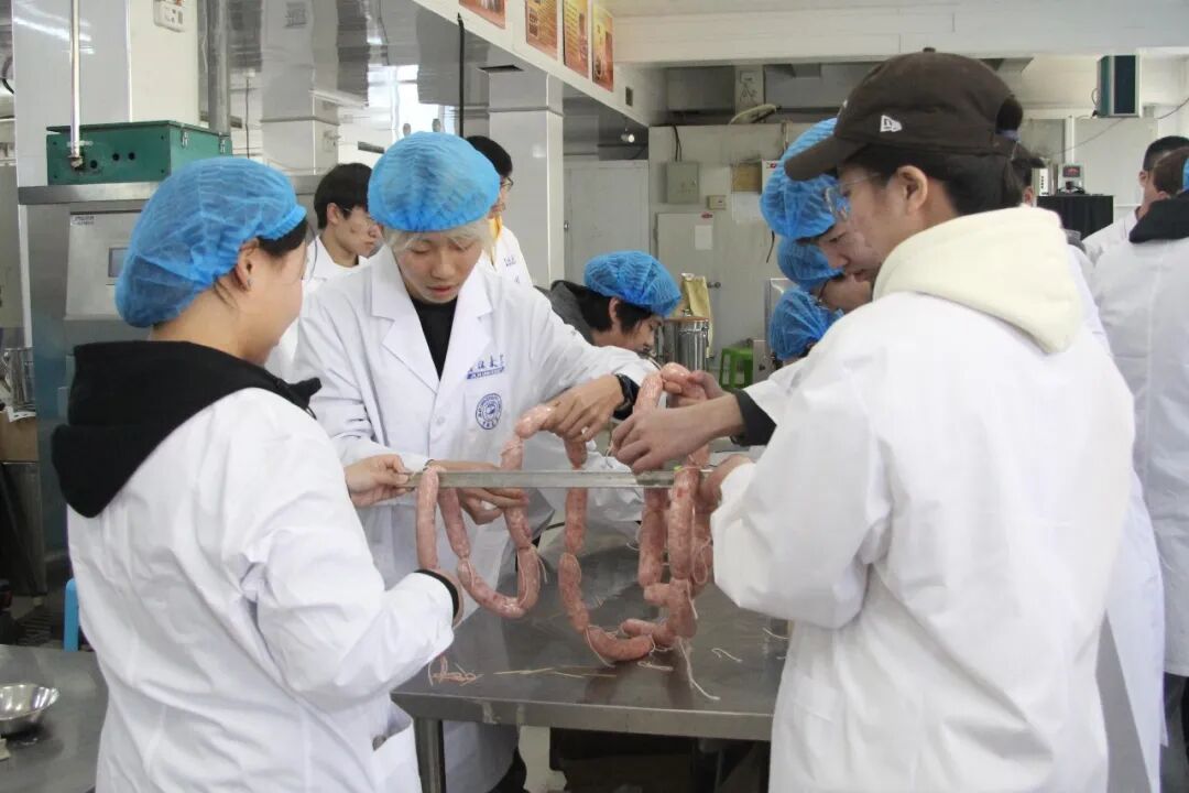 随后,由我院学生代表接力登场,对香肠制作的工艺流程、原料配比及加工工艺进行详细介绍,从理论层面为后续实践筑牢根基,确保每位同学都能清晰掌握香肠制作的关键要点。