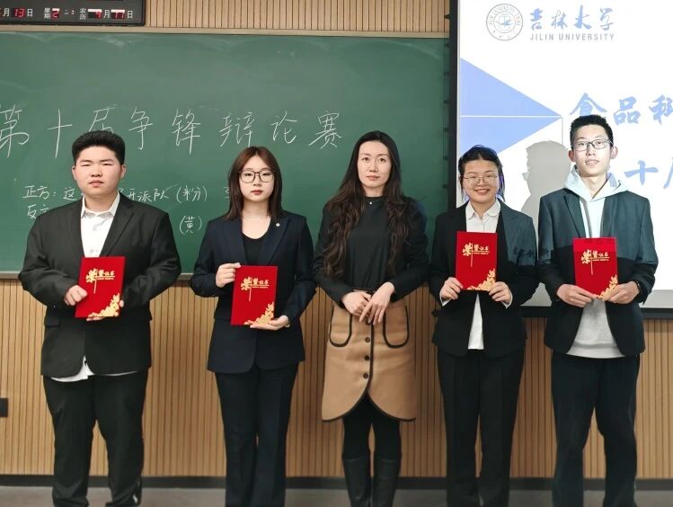 团委书记王新欣为获胜队伍和历次比赛优秀辩手颁奖,并且进行合照。