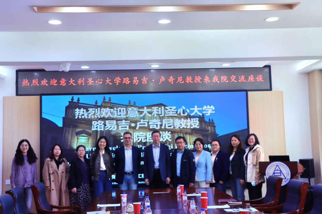 学科专业和人才培养情况,希望与圣心大学进一步完善联合培养平台建设,推进国际合作项目,持续深化实质性投入,促进成果产出。路易吉教授介绍了联合培养学生在意大利圣心大学学习情况和科研情况,并就化学指纹、图谱混合技术在食品质量评估中的应用与学院专家教师进行了讨论与交流。
