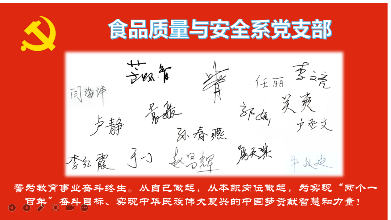 6月29日,为庆祝中国共产党成立101周年、迎接党的二十大,落实学校组织部《关于组织开展庆祝中国共产党成立101周年暨“喜迎二十大、奋进新征程”主题系列活动的通知》要求,按照学院统一布置,食品质量与安全系教工支部通过腾讯会议平台线上开展“践行大年精神,喜迎二十大,奋进新征程”主题党日活动。活动由支部书记卢静主持,学院党委书记董怀智参加活动。