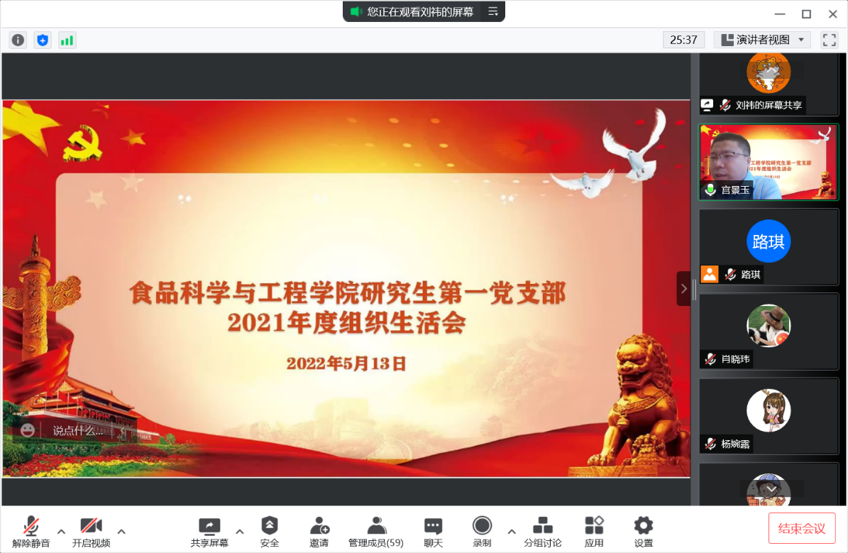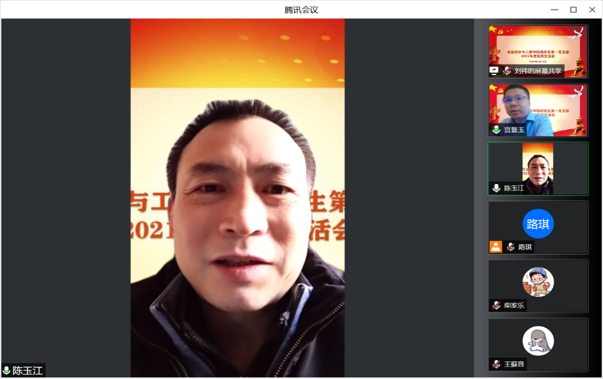 按照学校《关于召开2021年度基层党组织组织生活会和开展民主评议党员的通知》(校党组字〔2021〕235号)要求,根据学院党委统一部署,2022年5月13日下午,漫画18 研究生第一党支部以腾讯会议形式召开2021年度组织生活会。支部联系院领导陈玉江副院长参会指导,党支部的全体党员参加了此次会议。会议由党支部书记宫景玉主持。