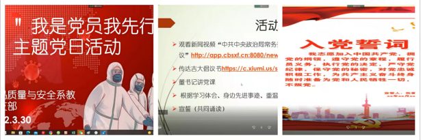 然后,大家根据学习体会和身边先进事迹交流内心感受。大家一致认为,虽然疫情给工作和生活带来很多困难,但我们感受到了中国力量,也收获了很多帮助和感动!大家都表示一定会立足岗位、坚定信心、尽好教师的本分、做好教师的表率,发挥好作为一名党员在这次大战大考中的先锋模范作用!
