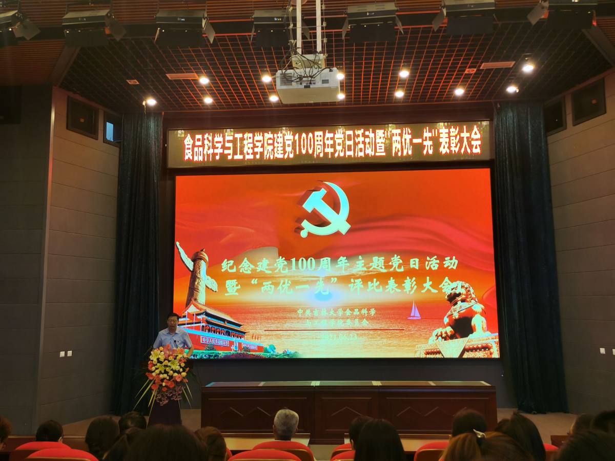 在西区图书馆二楼报告厅举行庆祝建党100周年主题党日活动暨“两优一先”表彰大会。学校党委组织部徐仁元副部长、学院党建工作联络员李明组长、学院党委委员、全体教职工以及学生党员代表参加了此次会议。会议由学院党委副书记李超主持。