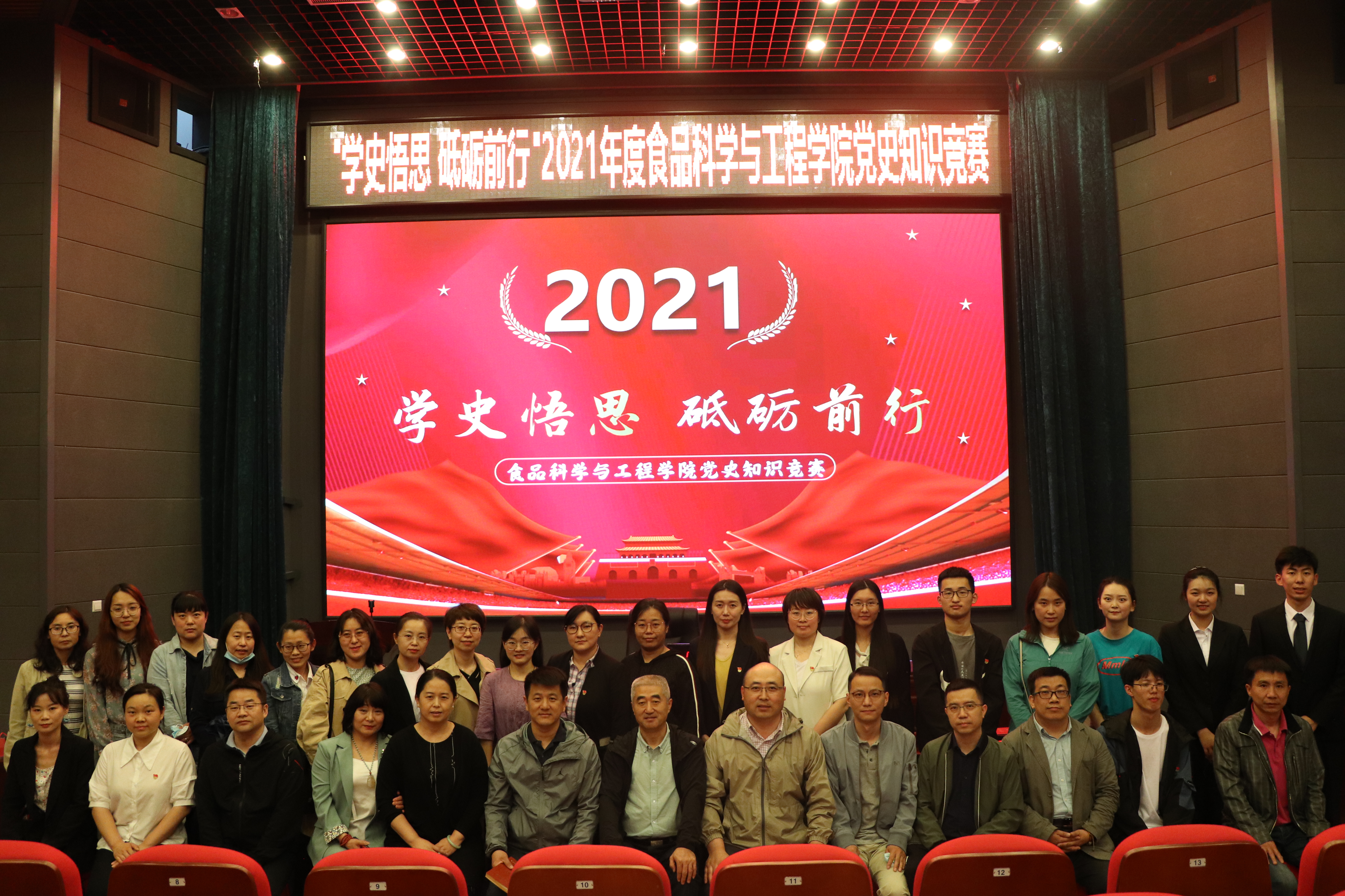 本次“学史悟思 砥砺前行”党史知识竞赛由学院师生党员联合组成五支代表队参赛,知识竞赛有必答题、抢答题、风险题等环节,涵盖《中国共产党章程》《党的十九大报告》、党建知识应知应会100题等党史相关内容。主持人宣布竞赛开始后,全体师生党员齐唱《中华人民共和国国歌》,比赛帷幕就此拉开。比赛中,选手们精神饱满,积极踊跃,沉着应答,展现出丰富的党史知识储备。在抢答题环节,各参赛队选手争分夺秒,精彩迭出,赢得了一阵阵热烈的掌声。比赛现场气氛热烈、紧张有序、扣人心弦,经过激烈角逐,食品科学与工程系第二教师党支部代表队荣获一等奖,食品科学与工程系第一教师党支部和实验教学中心党支部代表队荣获二等奖,食品质量与安全系教师党支部和机关党支部代表队荣获三等奖。