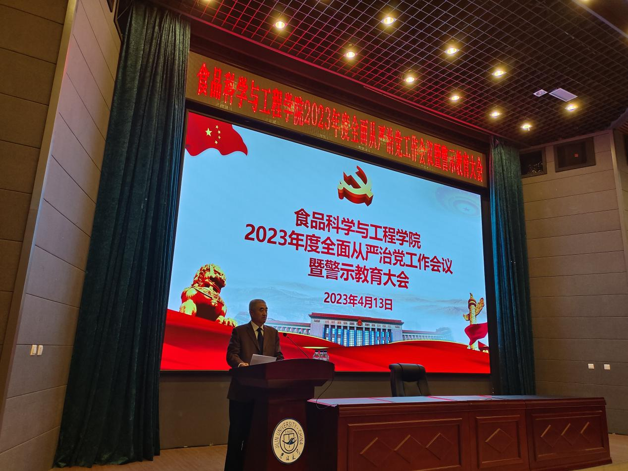 于2023年4月13日下午,在和平校区图书馆二楼报告厅召开2023年全面从严治党工作会议暨警示教育大会,全体教职员工参加会议.会议由党委书记董怀智主持。
